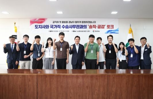 [경남도민뉴스=구인애 기자] 경상남도는 17일 도청 소회의실에서 ‘도지사와 2025년 국가직 수습사무관과의 솔직‧공감 토크’를 개최했다.