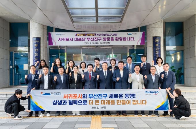 [경남도민뉴스=신석주 기자] 부산진구는 9월 18일 제주특별자치도 서귀포시와 ‘친선결연도시 체결식’을 갖고 상호 발전과 협력 강화를 위한 동행을 공식화했다.
