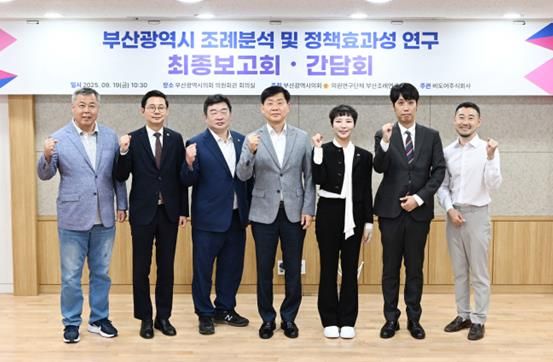 [경남도민뉴스=신석주 기자] 부산시의회 의원연구단체 '부산조례연구회'가 9월 19일 오전 10시 30분 부산시의회 의원회관 회의실에서 『부산광역시 조례분석 및 정책 효과성 연구』 최종보고회를 개최했다.