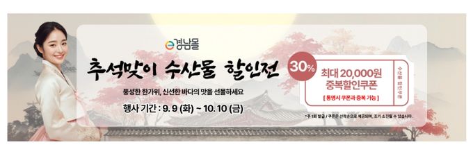 [경남도민뉴스=구인애 기자] 경상남도는 추석 명절, 도내 우수 수산물 소비를 촉진하고 어업인 소득을 높이기 위해 온오프라인 소비 촉진 행사를 개최한다. 이번 행사는 온라인몰 특별 할인 기획전과 전통시장 온누리 상품권 환급행사를 중심으로 진행하며, 다채로운 혜택을 제공한다.