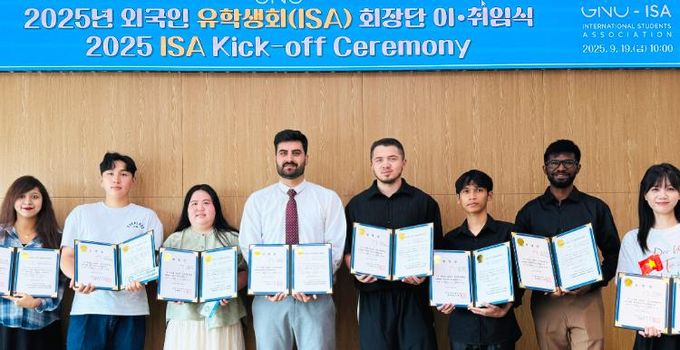 [경남도민뉴스=구인애 기자] 경상국립대학교는 9월 19일 오전 가좌캠퍼스 도서관 6층 회의실에서 외국인 유학생회(ISA, International Students Association) 회장단 이취임식 행사를 개최했다.