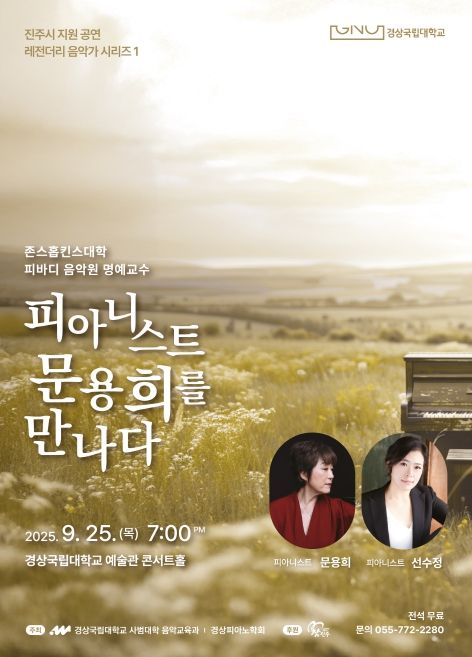 [경남도민뉴스=구인애 기자] 경상국립대학교 사범대학 음악교육과와 경상피아노학회는 세계적인 피아니스트 문용희 교수를 초청해, 9월 25일 오후 7시 경상국립대학교 예술관 콘서트홀에서 특별한 음악회 ‘피아니스트 문용희를 만나다’를 개최한다.