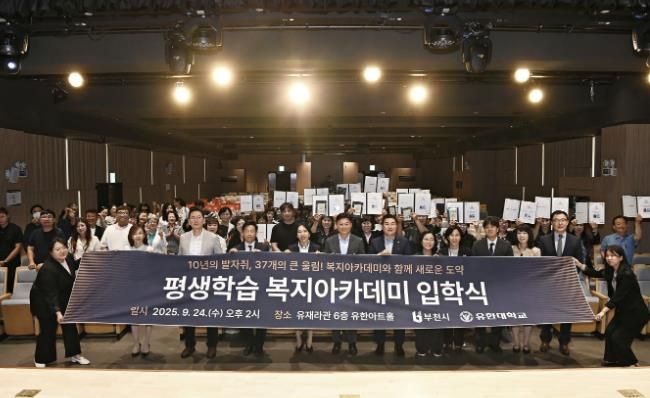 [경남도민뉴스=김동규 기자] 부천시는 지난 24일 유한대학교에서 ‘부천시·유한대학교 복지아카데미’ 입학식과 업무협약식을 열었다. 이번 행사는 조용익 부천시장과 장은영 유한대학교 총장을 비롯해 37개 동 지역사회보장협의체 위원장 등 150여 명이 참석한 가운데 진행됐다.