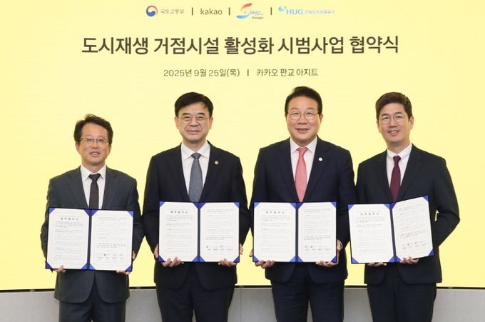 [경남도민뉴스=신석주 기자] 부산 동구는9월 25일 오후 카카오 판교아지트(경기 성남시 소재)에서 국토교통부, 카카오, 주택도시보증공사(HUG)와 ‘도시재생 공동이용시설 활성화 시범사업 업무협약(MOU)’을 체결했다.