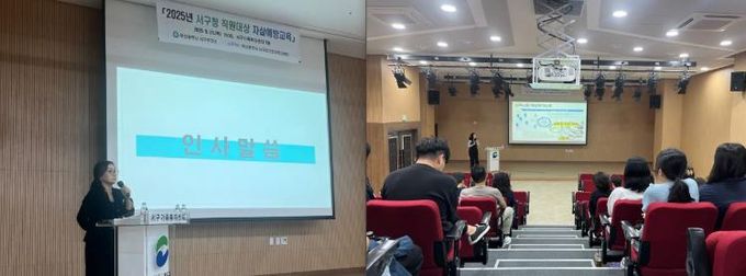 교육은 서구정신건강복지센터 전문 강사가 맡아 자살 문제 현황과 이해, 위험 요인과 경고 신호, 위기 상황별 대응 방법 등을 소개하며 실질적인 대응 역량 강화를 도왔다.