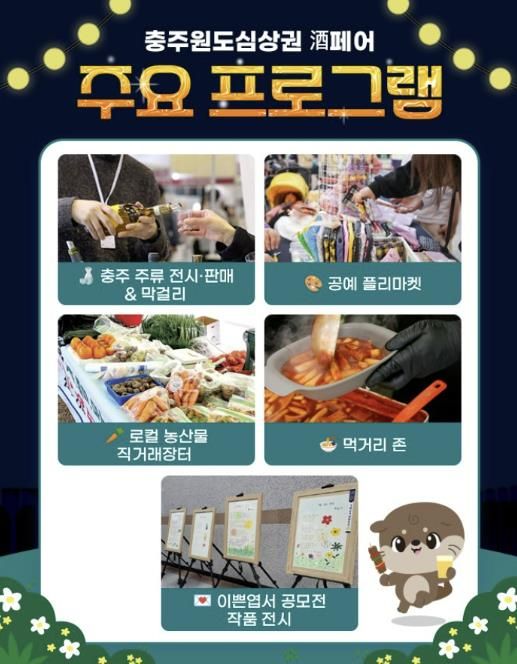 행사장에는 △충주에서 생산되는 주류 전시 및 판매 △시음·체험 부스 △공연 △라이브 커머스 등 다채로운 프로그램이 마련돼 시민들에게 풍성한 먹거리, 볼거리, 즐길 거리를 제공할 예정이다.