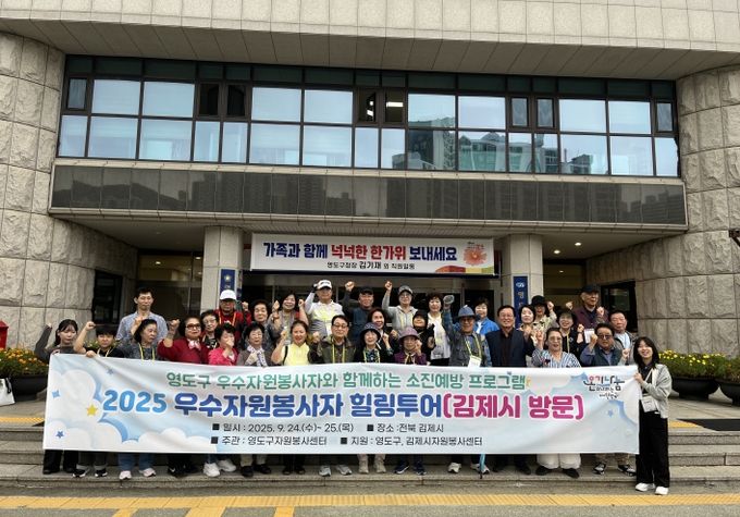 [경남도민뉴스=김채연 기자] 영도구자원봉사센터는 지난 9월 24일부터 25일까지 1박 2일간 ‘우수자원봉사자 힐링투어’를 개최하고, 우수 자원봉사자 30여 명과 함께 영도구의 우호도시인 전북 김제시를 방문했다.