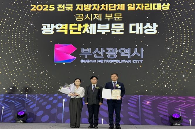 [경남도민뉴스=신석주 기자] 부산시는 오늘(30일) 오후 2시 청주오스코에서 열린 '2025 전국 지방자치단체 일자리대상' 시상식에서 '공시제 부문' 광역단체 대상(국무총리상)과 '우수사업 부문' 우수상(장관상)을 각각 수상했다고 밝혔다.