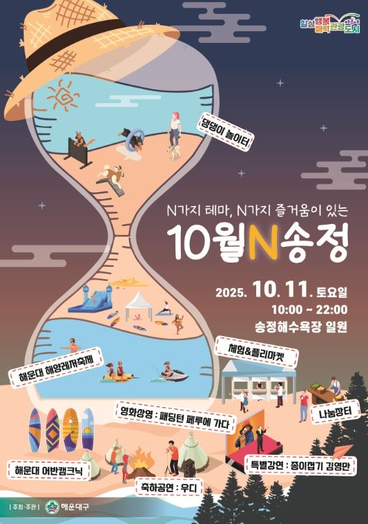 [경남도민뉴스=김채연 기자] 해운대구는 10월 11~12일, 해운대·송정해수욕장에서 ‘N가지 테마, N가지 즐거움이 있는 10월N 해운대·송정’을 개최한다.