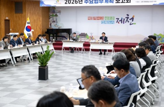 [경남도민뉴스=박만수 기자] 제천시는 지난 13일 시청 청풍호실에서 김창규 시장 주재로 국장 및 직속기관장, 부서장이 참석한 가운데 2026년 주요업무계획 보고회를 개최했다.
