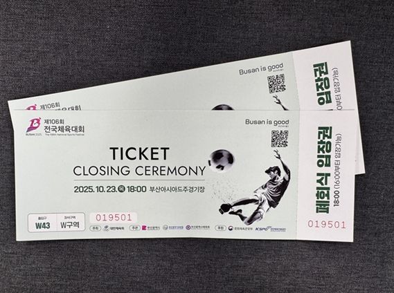 [경남도민뉴스=신석주 기자] 부산시는 오는 10월 23일 오후 6시 부산아시아드주경기장에서 열리는 '제106회 전국체육대회' 폐회식 입장권을 오늘(20일)부터 선착순으로 무료 배부한다고 밝혔다.