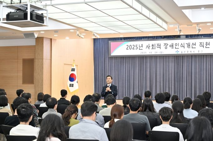 [경남도민뉴스=최재경 기자] 울산 중구가 10월 20일 오후 3시 중구청 대회의실에서 직원들을 대상으로 2025년 사회적 장애인식개선 교육을 실시했다.