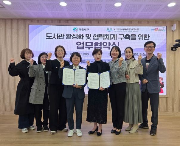 [경남도민뉴스=김채연 기자] 해운대구는 10월 30일, 부산광역시립반송도서관과 도서관 활성화 및 협력체계 구축을 위한 업무협약을 체결했다.