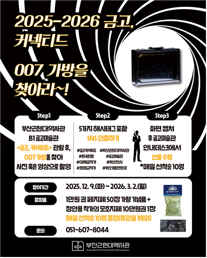 [경남도민뉴스=신석주 기자] 부산근현대역사관은 내일(9일)부터 2026년 3월 2일까지 역사관 본관 금고미술관에서 투어 전시 '2025-2026 '금고, 커넥티드''를 개최한다고 밝혔다.
