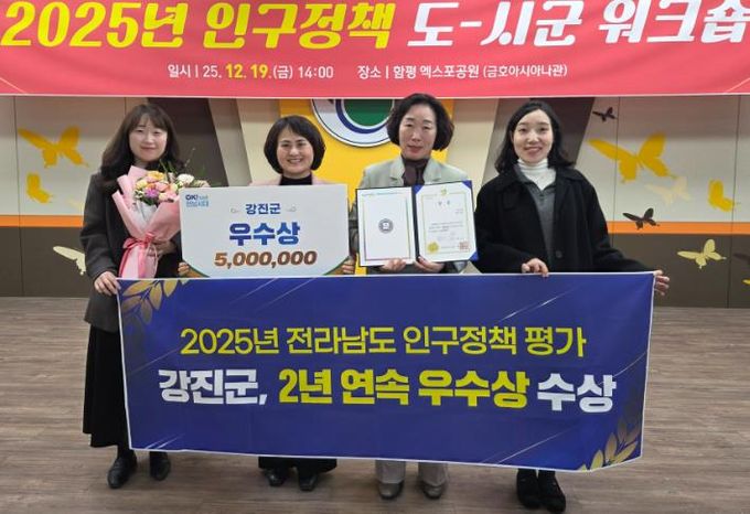 [경남도민뉴스=최인태 기자] 강진군이 전라남도가 실시한 2025년 인구정책 우수 시·군 평가에서 ‘우수상’을 수상했다.