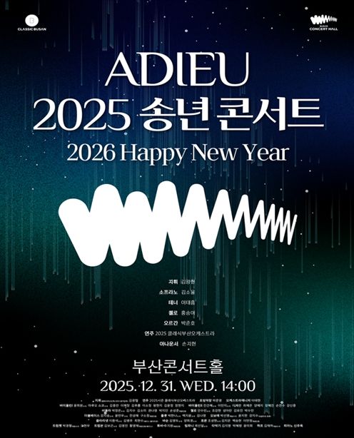 [경남도민뉴스=신석주 기자] 클래식부산은 2025년 부산콘서트홀의 성공적인 개관과 완성도 높은 첫해를 함께한 시민들에게 감사의 마음을 전하기 위해 오는 12월 31일 오후 2시 부산콘서트홀에서 '아듀(ADIEU) 2025 송년 콘서트'를 개최한다고 밝혔다.