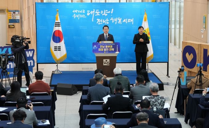 [경남도민뉴스=최인태 기자] 김영록 전라남지사는 24일 동부지역본부에서 열린 동부권 송년 기자 브리핑에서 2026년을 ‘동부권 100년 대도약의 원년’으로 선포하고 전남 미래 성장의 핵심 거점으로 육성하는 동부권 발전 전략을 발표했다.