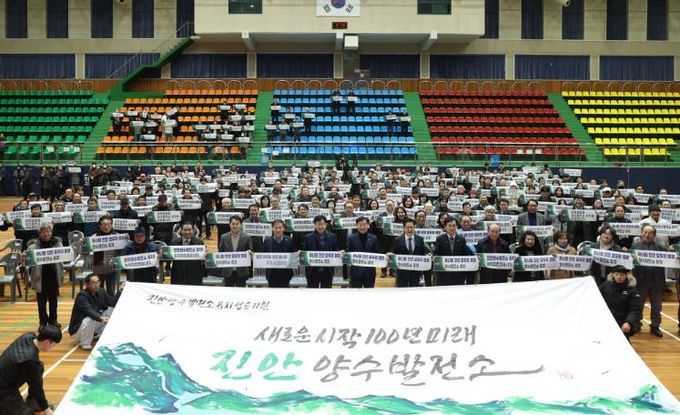[경남도민뉴스=최인태 기자] 진안군이 26일 오후 진안문예체육회관에서 군민 500여 명과 주요 내빈이 참석한 가운데 ‘진안양수발전소 유치 성공기원 범군민 결의대회’를 성황리에 마무리하고, 유치 성공에 대한 강력한 의지를 대내외에 선포했다.