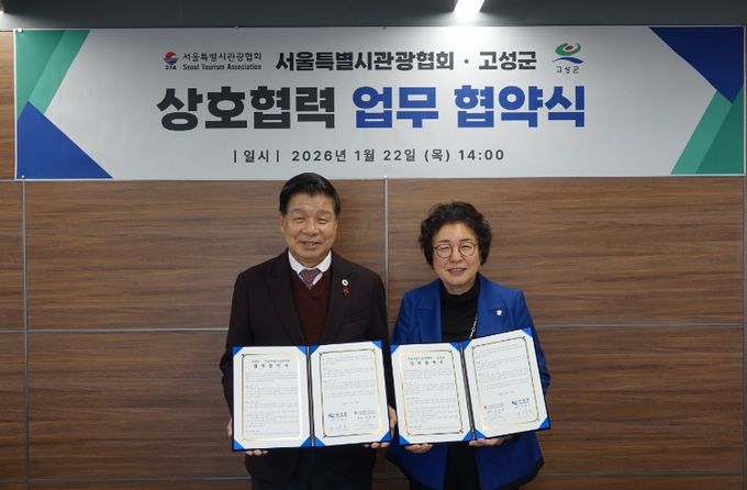 [경남도민뉴스=김태수 기자] 경남 고성군은 1월 22일 서울특별시관광협회 회의실에서 서울특별시관광협회(회장 조태숙)와 지역 관광 활성화 및 관광산업 발전을 위한 업무협약(MOU)을 체결했다고 밝혔다.