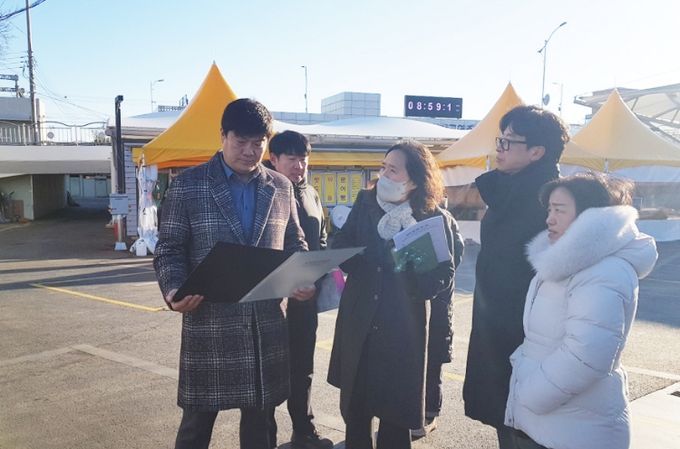 현장 참석자들은 시인성과 주목도를 높여 홍보메시지를 효율적으로 전달하기 위한 방법과 실질적인 남창역을 오가는 이용객과 시장 방문객의 유동량, 공간환경, 전원·통신 인프라, 유지관리까지 복합적인 요소를 따져가며 면밀히 살폈다.