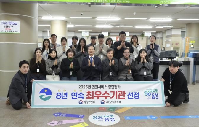 [경남도민뉴스=박만수 기자] 음성군이 행정안전부와 국민권익위원회가 공동 주관한 ‘2025년 민원서비스 종합평가’에서 최고 등급을 받아 8년 연속 최우수기관으로 선정되며, 탁월한 민원행정 역량을 다시 한 번 인정받았다.