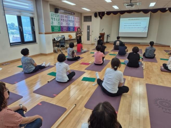 '한방으로 몸과 마음 청춘 교실'은 중풍과 심뇌혈관 질환 예방을 목표로 건강한 생활습관 형성을 돕는 교육과 기공체조를 병행한다.