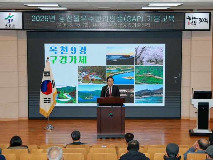 [경남도민뉴스=박만수 기자] 옥천군이 농업기술센터 농업인교육관에서 포도·복숭아 등 지역 대표 과수 재배 농가 130여 명을 대상으로 ‘농산물우수관리(GAP) 인증 기본교육’을 실시하며 농업 경쟁력 강화에 박차를 가했다.