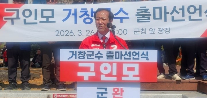 [경남도민뉴스=백형찬 기자] 구인모 거창군수가 세 번째 도전에 나섰다. 구 군수는 3월 26일 거창군선거관리위원회에 ‘민선 9기 거창군수 예비후보’로 등록한 뒤, 이날 오전 11시 거창군청 앞 광장에서 지지자들이 모인 가운데 출마 선언 담화문을 발표했다.