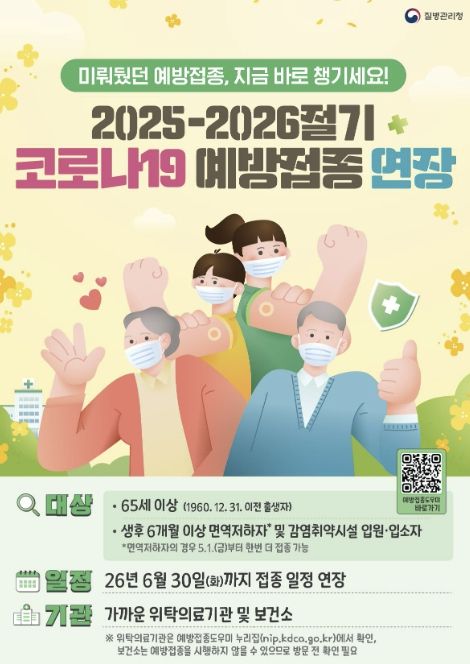 접종 대상은 2025~2026절기 코로나19 백신을 아직 접종하지 않은 △65세 이상 어르신 △감염취약시설 입원·입소자 △면역저하자 등이다.