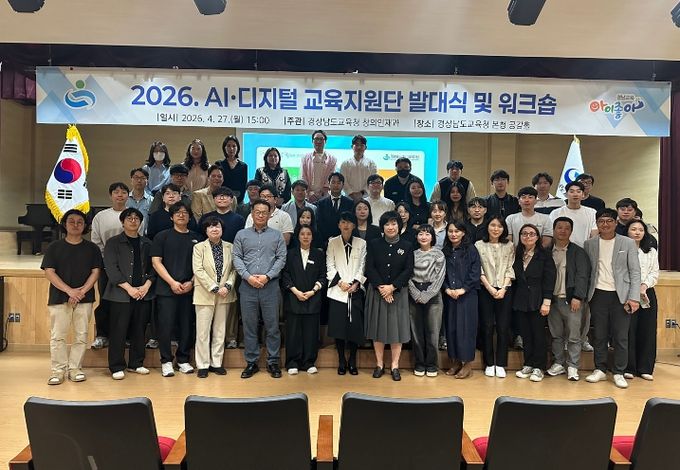 [경남도민뉴스=구인애 기자] 경상남도교육청은 27일, 경남교육청 공감홀에서 ‘2026년 인공지능·디지털 교육지원단 발대식 및 워크숍’을 개최하고, 경남형 인공지능(AI)·디지털 교육의 현장 안착에 본격적으로 나선다.