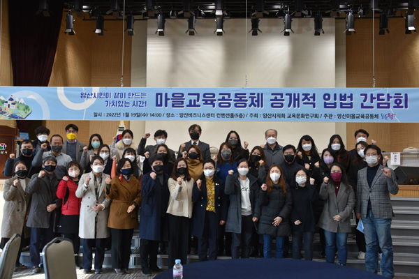 [경남도민뉴스] 양산시의회 교육문화연구회(회장 박미해)는 지난 19일 양산비즈니스센터 5층 컨벤션홀에서‘양산시 마을교육공동체 활성화 지원 조례 제정’을 위한 공개적 입법 간담회를 가졌다.