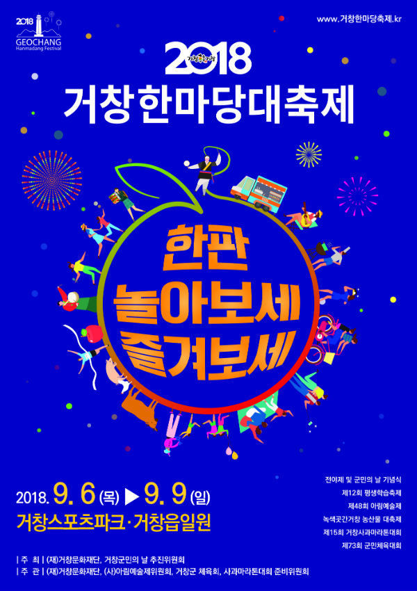 (거창/최병일) = 거창군 거창문화재단(이사장 구인모 거창군수)은 거창군의 대표축제인 2018 거창한마당 대축제가 내달 6일부터 9일까지 4일간 거창스포츠파크와 거창읍 일원에서 화려하게 개최된다고 22일 밝혔다.