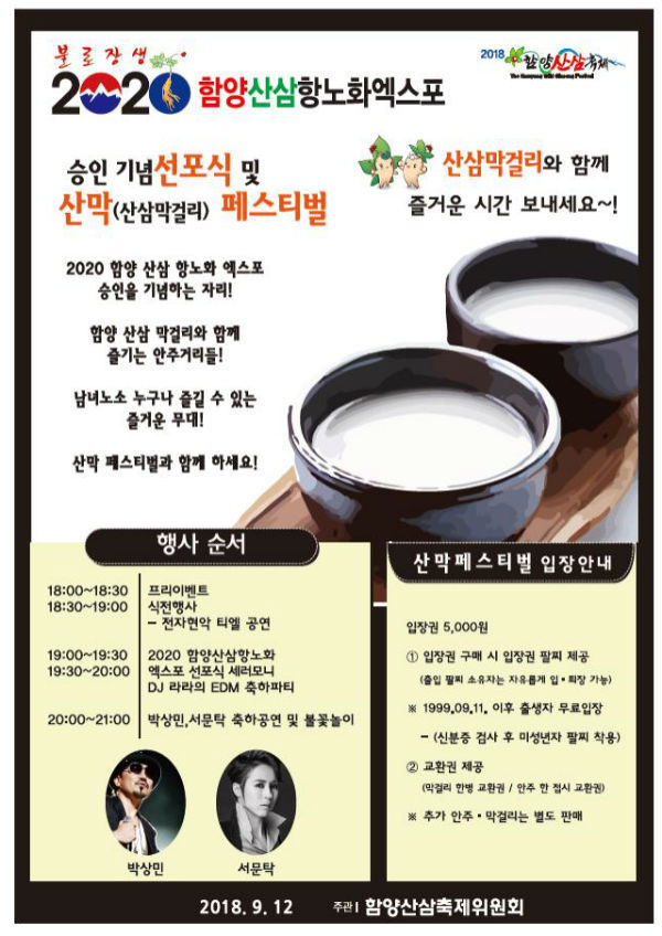 이번 이벤트는 2020년 함양산삼 항노화엑스포 승인을 기념하여 산삼축제 기간 중 마련한 특별이벤트로 군민 통합과 관광객 유치 및 국내외에 함양 엑스포를 널리 알리고자 하는 취지다.