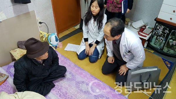 (경남도민뉴스) = 거창군은 건강주치의 사업 대상자인 암환자 정모씨(여, 87세, 거창읍 상림리)등 4명을 대상으로 경상대학교병원 경남지역암센터(이하 경남지역암센터) 혈액종양내과 강정훈 교수 등 전문 의료진이 가정방문 진료를 실시했다고 밝혔다.