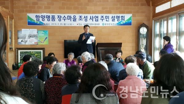 (경남도민뉴스) = 함양군보건소는 지난 25일 오후 2시, 마천면 창원마을 회관에서 함양 명품 장수마을 조성사업 주민설명회를 개최했다.