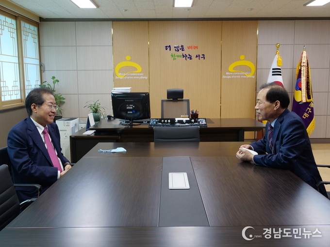 [경남도민뉴스] 국민의힘 대구광역시장 선거에 나선 홍준표 의원은 12일(화) 오전 서구청을 찾아 현장 행정 및 소통 행보를 이어갔다.