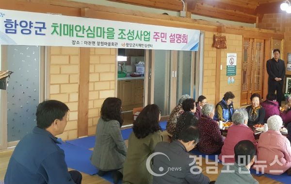 (경남도민뉴스) = 함양군보건소 치매안심센터에서는 지난 27일 오후 2시 마천면 창원마을 회관에서 함양군 치매안심마을 조성사업 주민설명회를 개최했다.