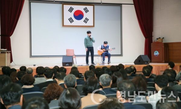 (사천/이형섭 기자) = 사천시(시장 송도근)는 격월제로 시행해오던 직원정례조회를 직원소통과 화합을 위한 직원장기 발표회를 가지는 등 변화된 모습으로 3월 정례조회를 가졌다.