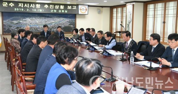 이날 보고회는 군수 지시사항 추진상황 총괄 보고를 시작으로 본청 담당관․과, 직속기관, 사업소별 지시사항 추진상황에 대해 논의하는 방식으로 진행됐다.