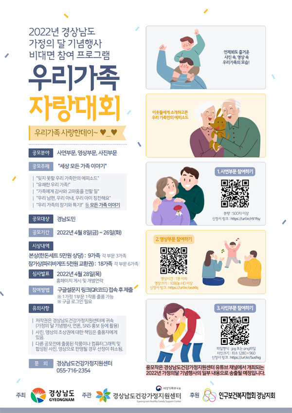 - 우리가족 자랑대회 ‘우리가족 사랑한데이’(사진․영상․사연 부문)