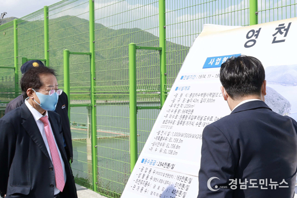 [경남도민뉴스] 홍준표 국민의힘 대구시장 후보는 낙동강 상류 댐에서 도수관로를 연결해 1급수를 원수로 쓰는 상수도 공급 방안인 ‘맑은물 하이웨이’ 구상을 보다 구체화하기 위해 1일(일) 오후 영천댐을 방문했다.
