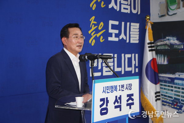 강 후보는 “1조 예산시대를 열겠다”고 밝힌 뒤, “남해안 관광벨트의 중심도시로 만들고, 수소에너지산업 메카조성, 농수산식품산업과 해양항노화바이오산업을 미래 핵심사업으로 키우겠다”며 공약사업에 대한 설명과 각오를 밝혔다.