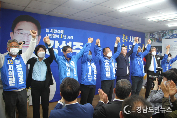 [경남도민뉴스] 더불어민주당 강석주 통영시장 후보 선거사무소 개소식이 13일 오후 2시 무전동에 소재한 선거사무소에서 지역 주요 인사들과 지방선거 후보자, 지지자 등이 대거 참석한 가운데 열렸다.