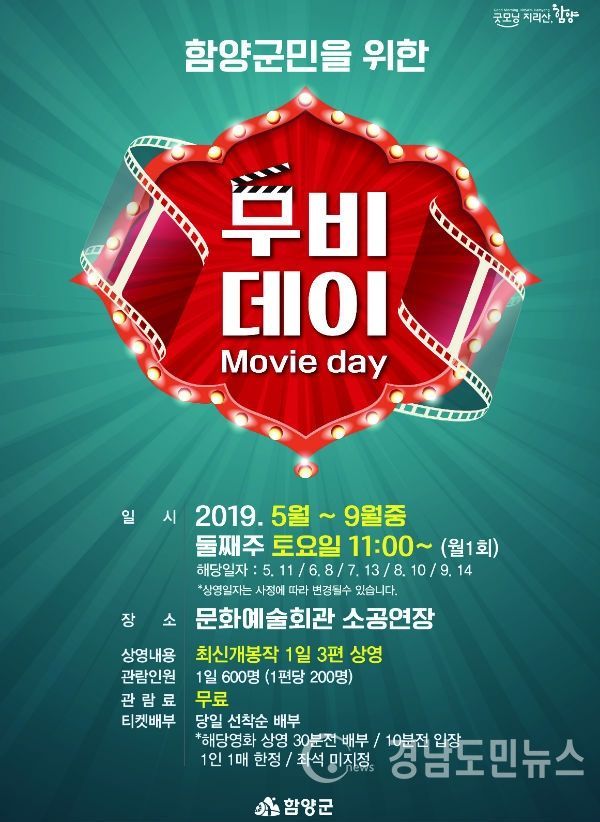 (경남도민뉴스) = 함양군이 영화 관람을 위하여 인근 도시로 가야하는 불편함을 해소하기 위해 매월 두 번째 토요일 최신 개봉영화 3편을 무료로 상영한다.