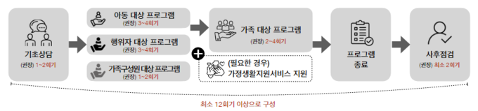 올해는 재학대, 중복학대 등 아동학대 위험도가 심각하여 종합적집중적 개입이 필요하다고 판단되는 가정에 대해 가족기능 회복을 지원하는 시범사업을 실시한다.