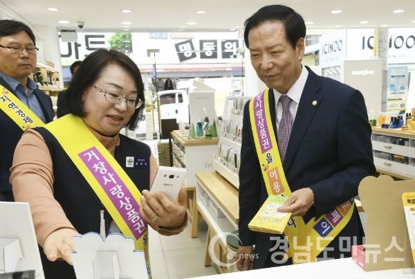 캠페인에 참석한 구인모 군수는 제로페이 스마트폰 결제 시연과 거창사랑상품권을 이용, 거창전통시장 및 소매점에서 물품을 구입하는 등 소상공인들의 어려움을 함께 나눴다.