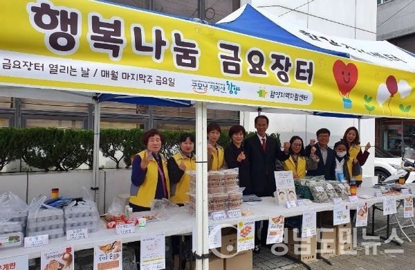 (경남도민뉴스) = 함양지역자활센터(센터장 이상미)는 26일 농협중앙회 함양군지부 앞에서 ‘희망나눔 금요장터‘를 운영했다.