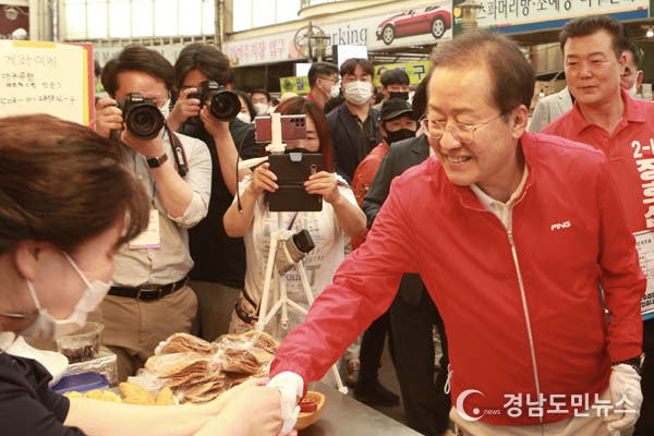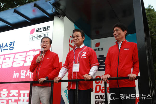 [경남도민뉴스] 홍준표 국민의힘 대구시장 후보는 선거운동 막바지의 주말을 맞아 정치버스킹 ‘만민공동회’, 대구경북 합동유세, 민생현장 방문 등으로 숨가뿐 일정을 소화하며 대세 굳히기에 나섰다.