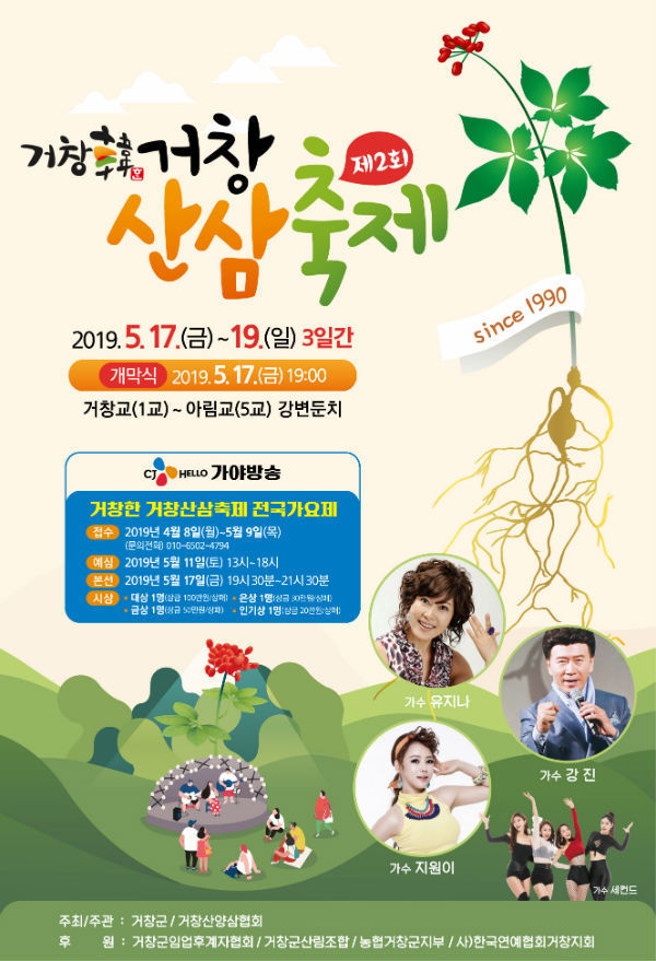 (경남도민뉴스) = 거창군은 오는 17일부터 19일까지 3일간 거창교 일원 강변둔치에서 ‘제2회 거창산삼축제’를 거창산양삼협회 주관으로 개최한다.