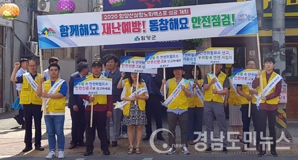 (경남도민뉴스) = 함양군은 17일 함양군청 광장에서 주요 시가지 일원까지 제278차 안전점검의 날을 맞이하여 2020 함양군 기초질서 지키기 캠페인과 병행 안전문화 확산 운동 홍보로 안전사고 제로화에 총력을 다하고 있다.
